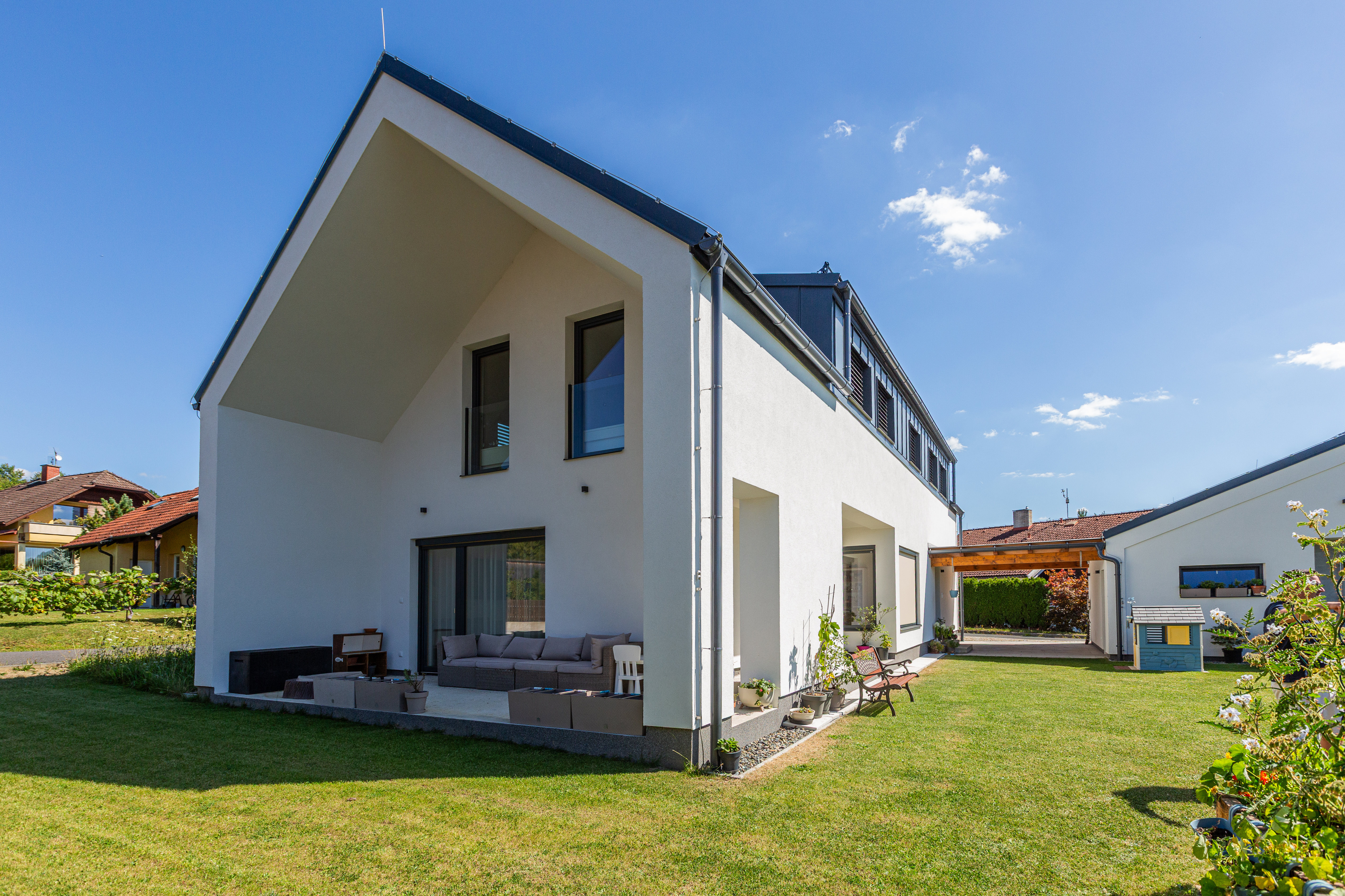Dům má hodně výrazný přesah štítu, koho napadlo takové řešení?