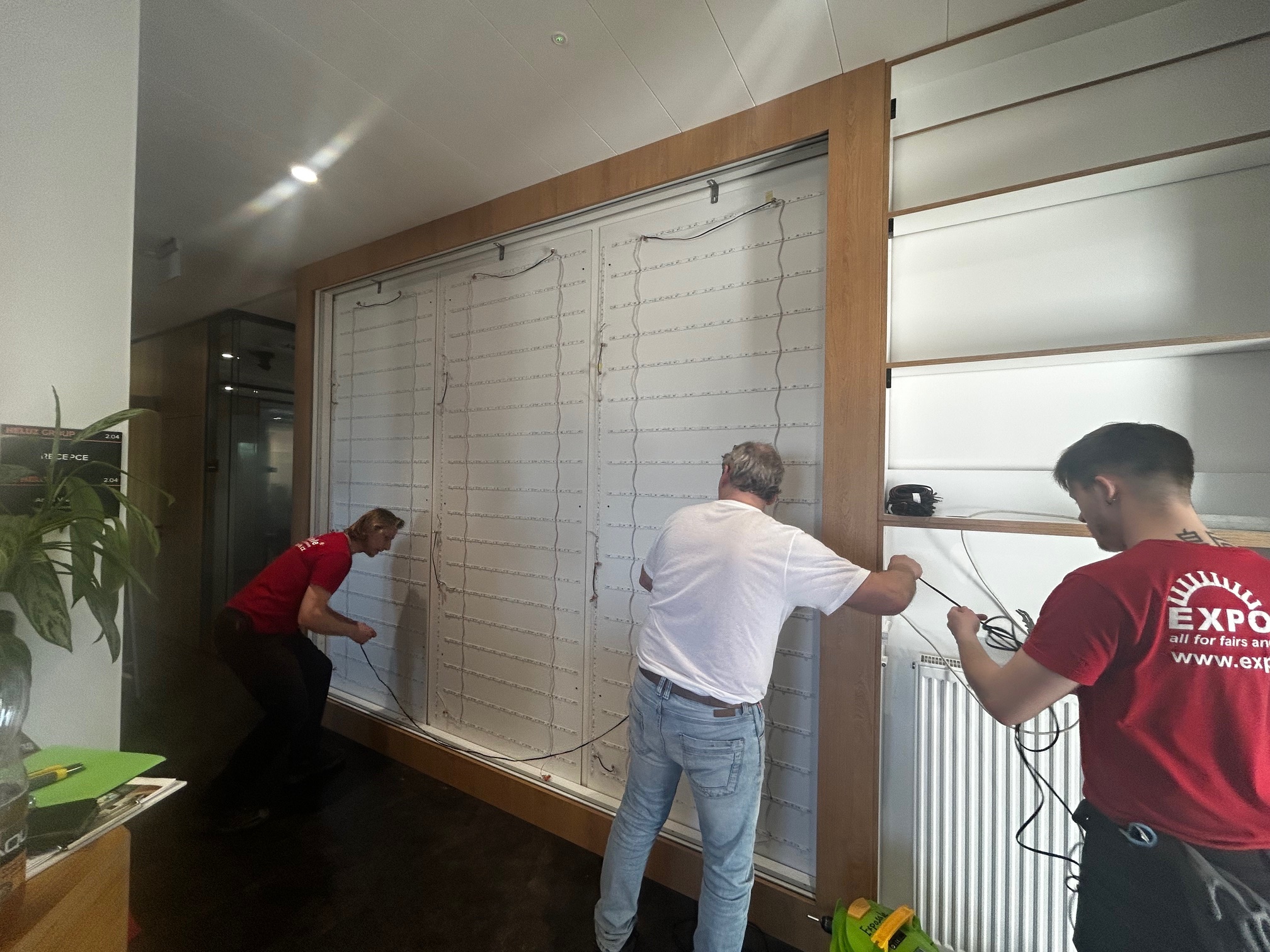 Jedním z hlavních aspektů tohoto projektu bylo začlenění designového prvku do již existujícího a několik let funkčního interiéru. Tento proces nebyl jednoduchý, protože sladit nové materiály, barevné odstíny a textury s původním stylem vyžadovalo precizní plánování a cit pro detail. Klíčovým požadavkem investora byla možnost snadné výměny skel s grafikou, která by umožnila přizpůsobit design stěny aktuálním trendům nebo osobním preferencím. Díky promyšlenému systému lze jednotlivé skleněné panely jednoduše vyjmout a nahradit novými - například s jinou fotografií nebo grafikou. Tímto způsobem se stěna může i po letech snadno proměnit a přizpůsobit aktuální požadavkům.