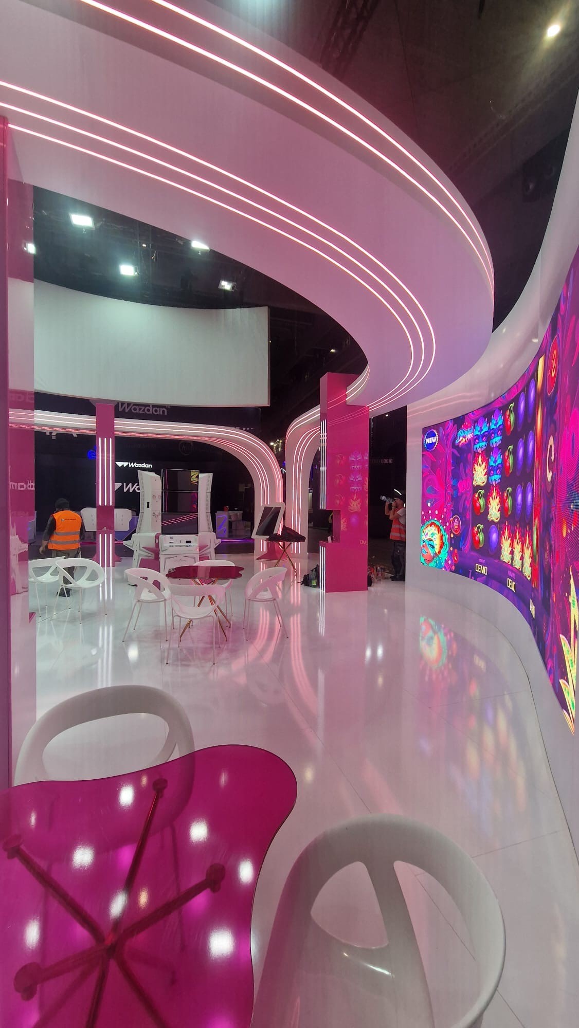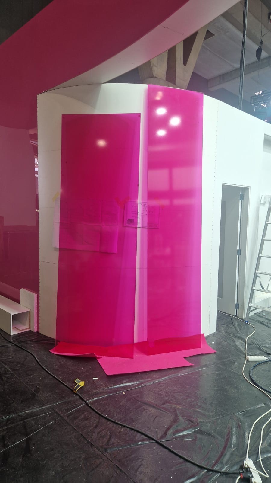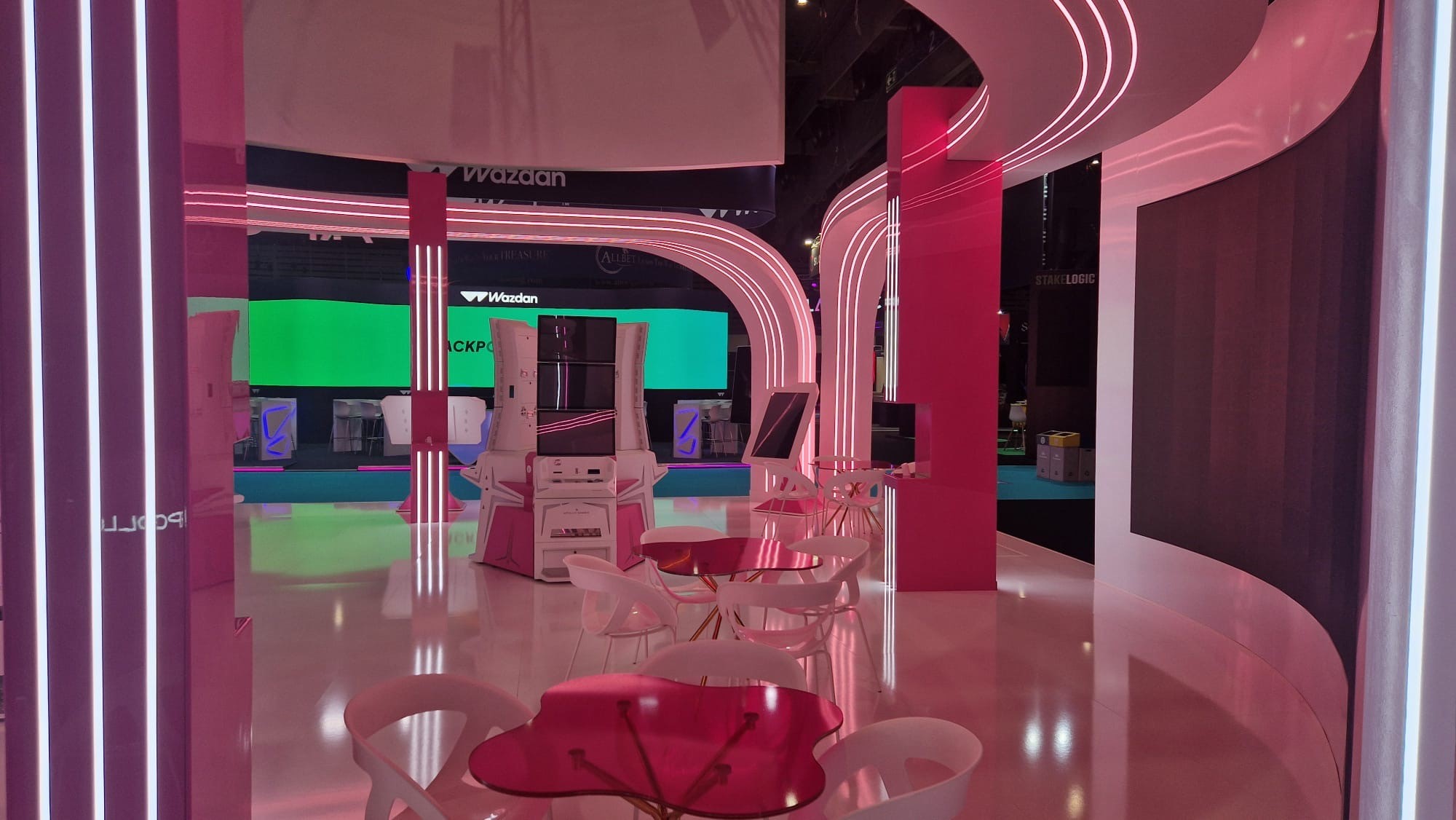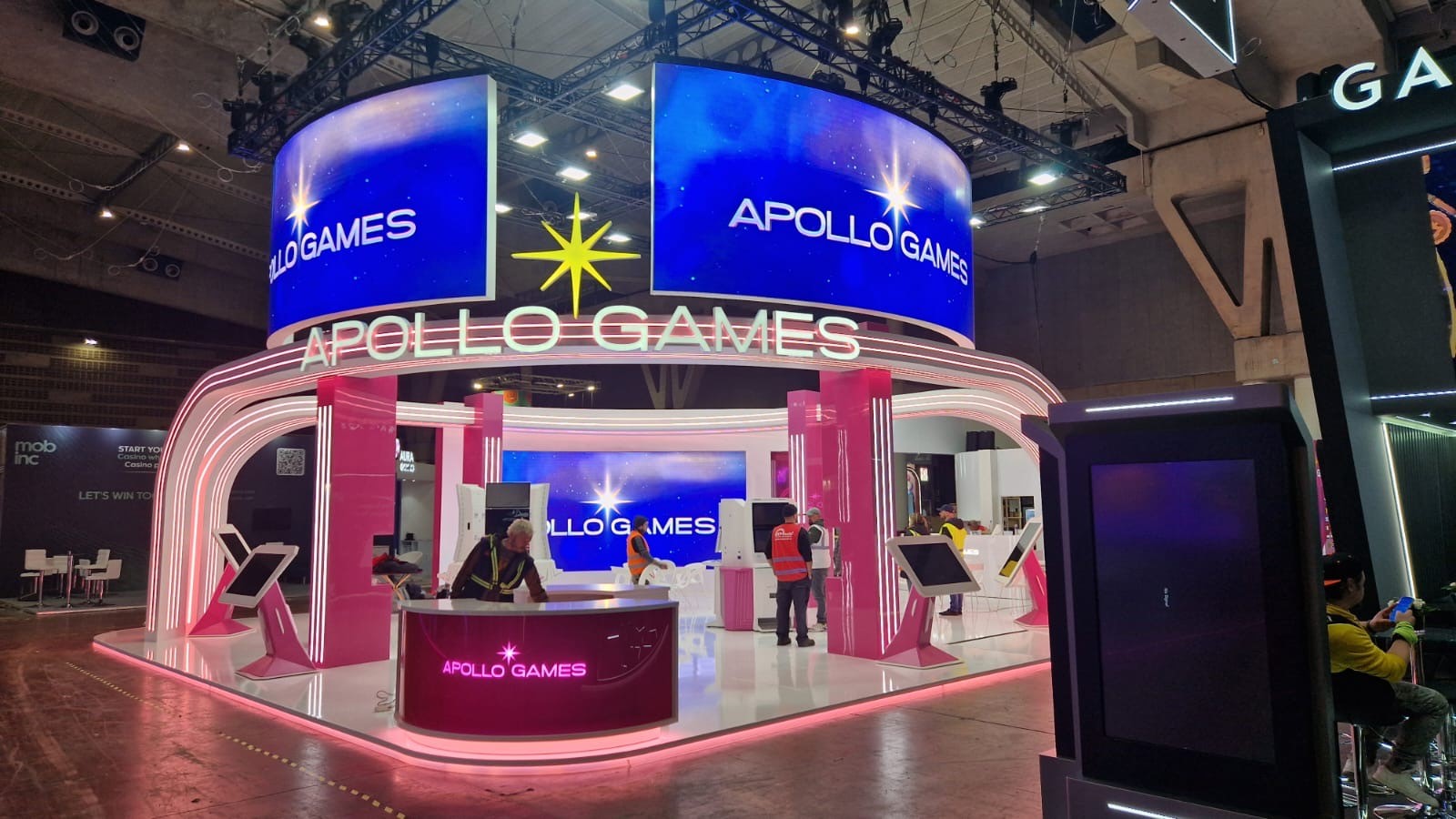 Pro expozici byla realizována skleněná stěna o rozměru 2,7 x 2,68 metru, polepená růžovou fólií. Na stěně bylo umístěno trojrozměrné logo společnosti APOLLO GAMES, které poutalo pozornost návštěvníků a zároveň jasně prezentovalo identitu značky. Součástí expozice bylo rovněž okno o velikosti 0,7 x 2,99 m pro oddělení dvou částí prostoru se zachováním průhlednosti.