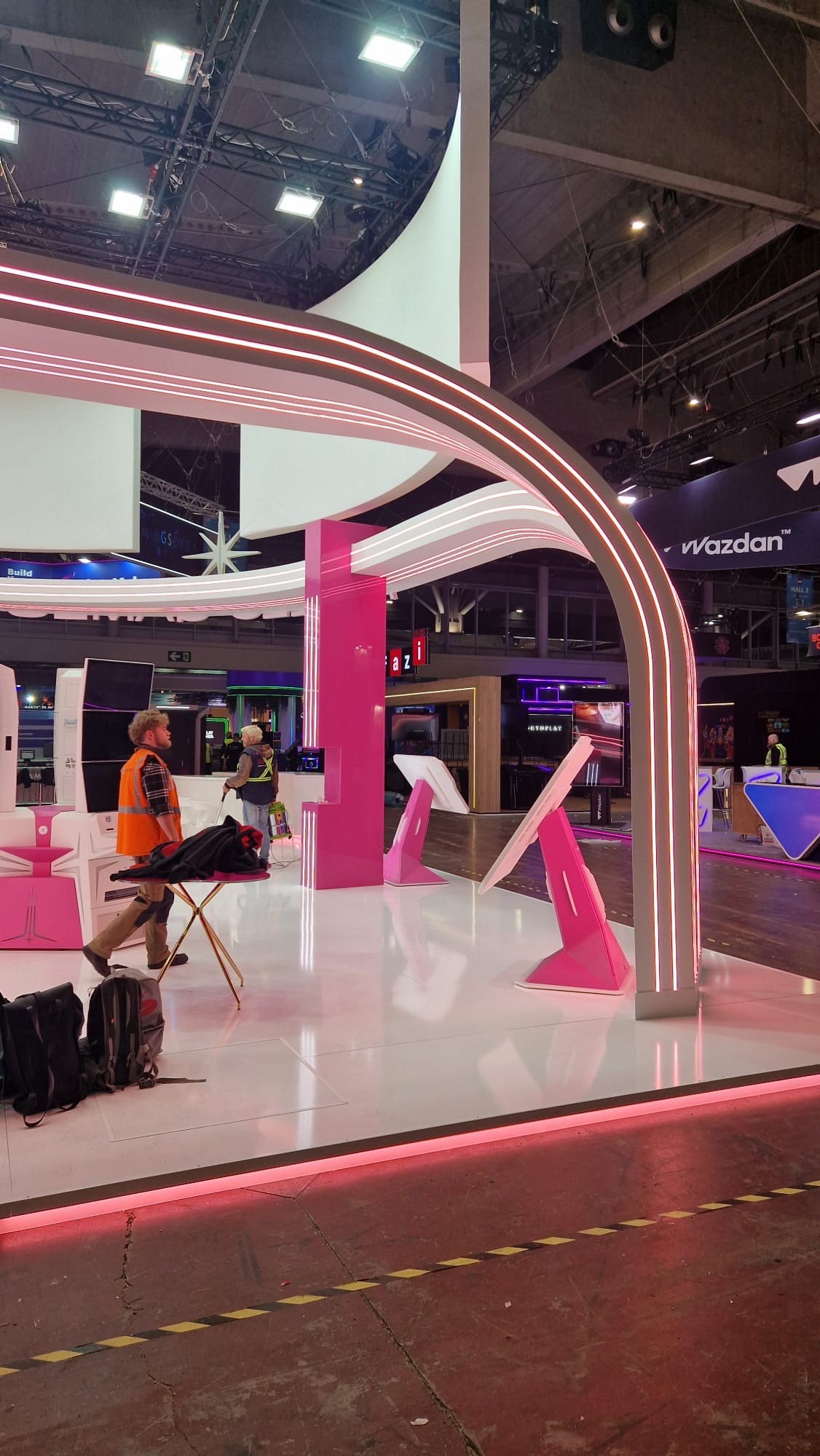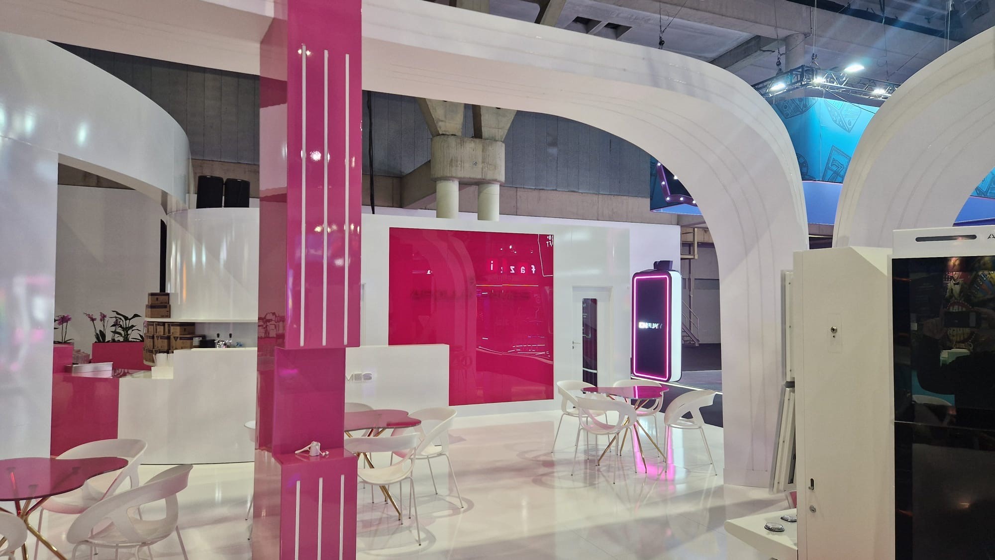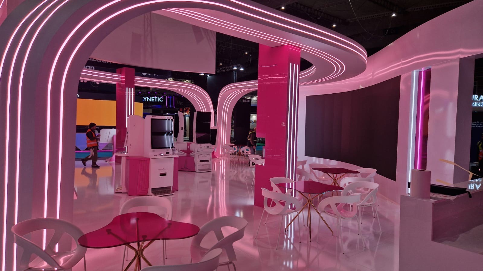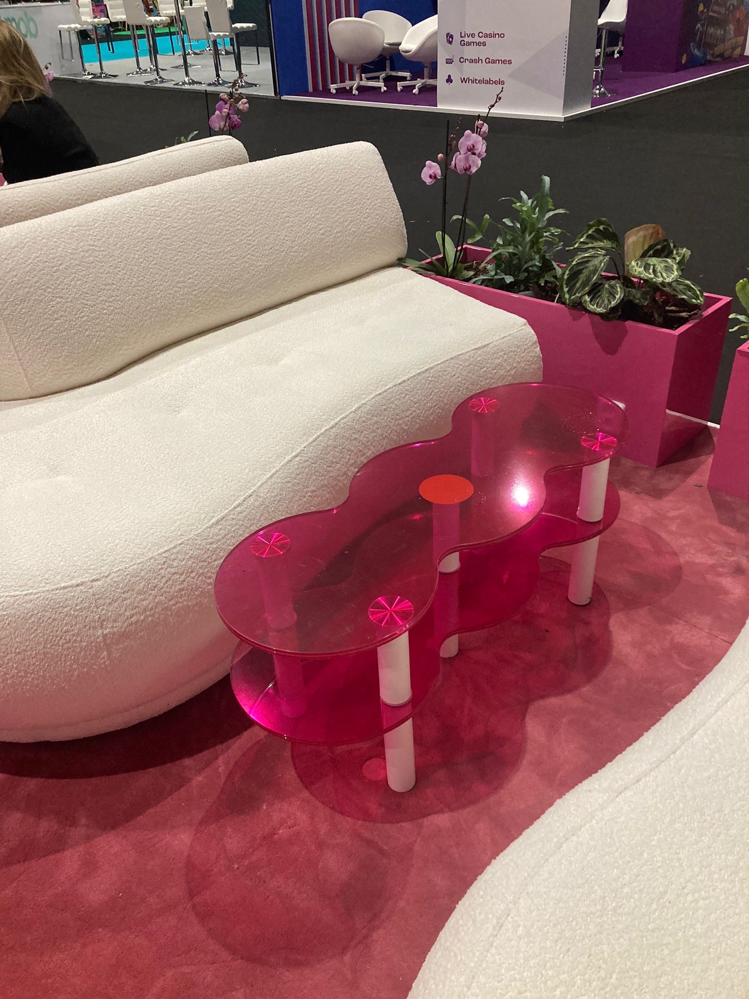 Pro expozici byla realizována skleněná stěna o rozměru 2,7 x 2,68 metru, polepená růžovou fólií. Na stěně bylo umístěno trojrozměrné logo společnosti APOLLO GAMES, které poutalo pozornost návštěvníků a zároveň jasně prezentovalo identitu značky. Součástí expozice bylo rovněž okno o velikosti 0,7 x 2,99 m pro oddělení dvou částí prostoru se zachováním průhlednosti.