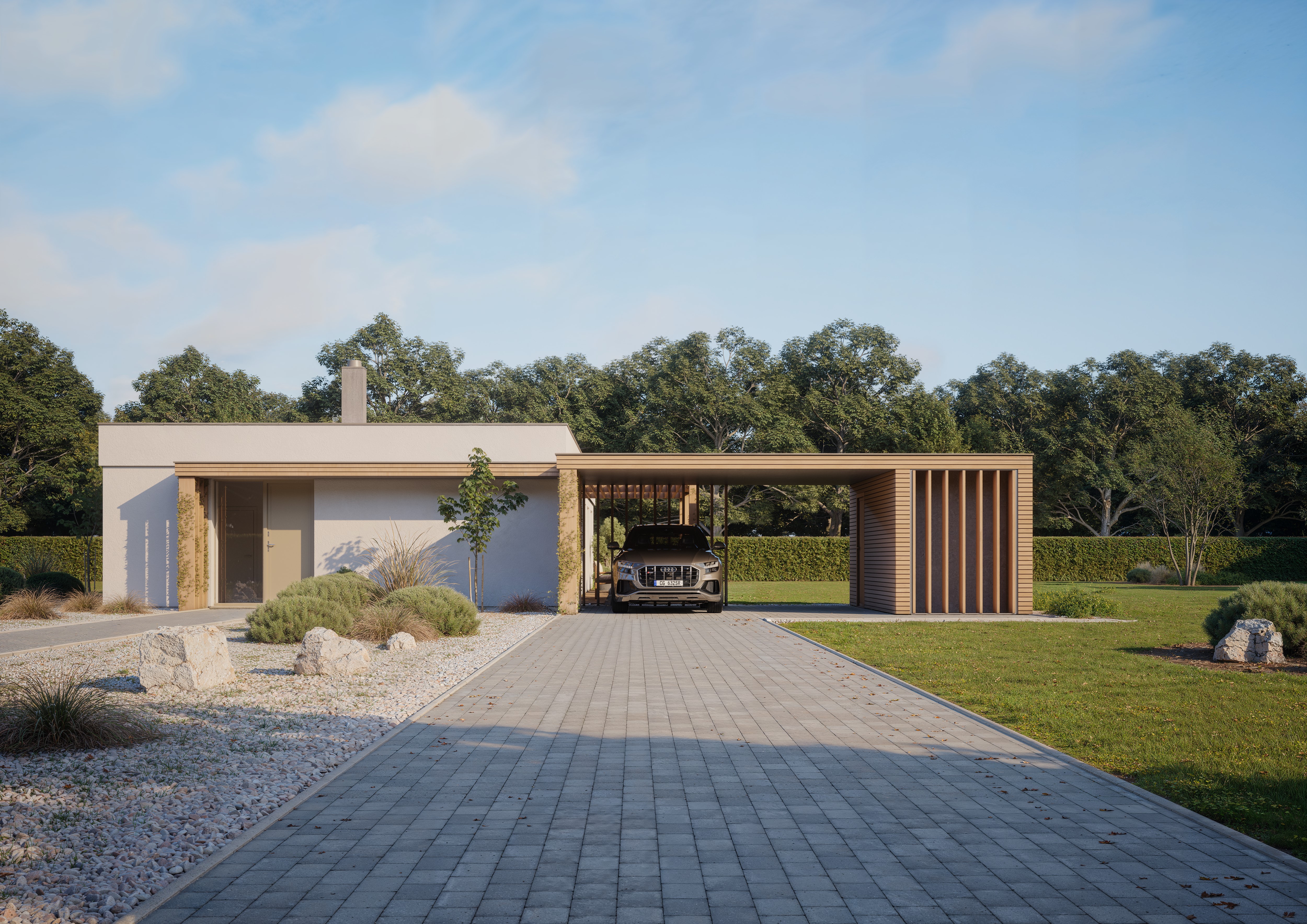 Navíc Element nabízí něco, co u bungalovů není běžné – masivní strop. Ten zajišťuje vyšší tepelnou akumulaci a lepší technické parametry. A co víc, umožňuje budoucí přístavbu patra nebo obytného podkroví.