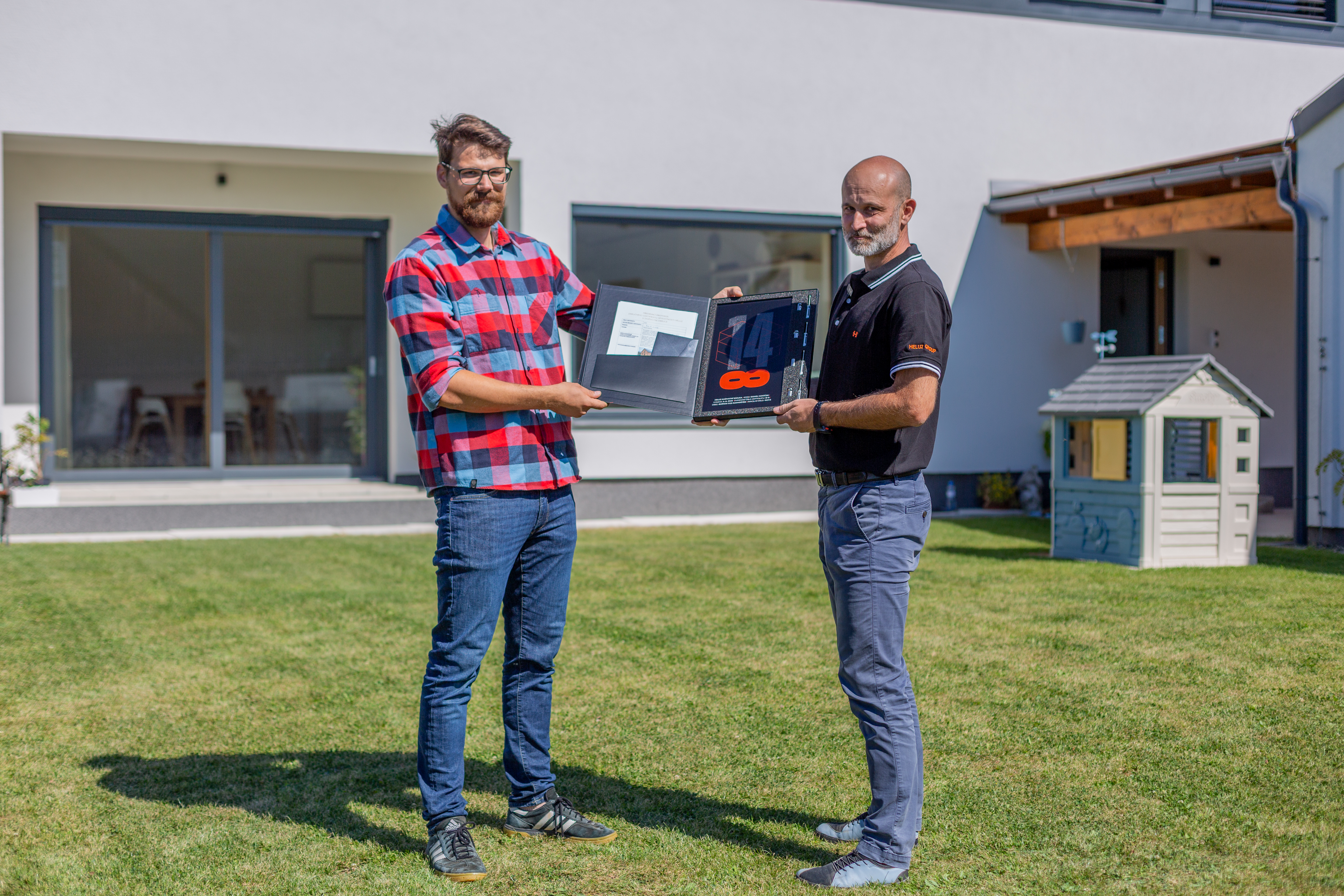 Rožnov pod Radhoštěm – Společnost HELUZ slavnostně předala svou historicky první Doživotní záruku na konstrukční systém HELUZ. Unikátní garanci získal pan Daniel Hanáček, který se se svou rodinou zabydluje v novostavbě rodinného domu v Rožnově pod Radhoštěm. Záruční certifikát, plaketu a osobní dopis od majitelů společnosti HELUZ, mu předal obchodní zástupce společnosti HELUZ, René Švancer.
