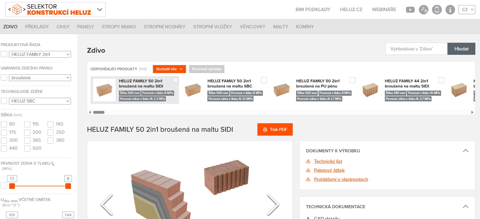 Zpřehledněna byla rovněž oblast BIM podkladů. HELUZ dlouhodobě nabízí kvalitní BIM knihovny pro software Revit a ArchiCAD, včetně pokročilých nástrojů, jako je Cihla 4.0 nebo doplněk pro automatizovaný návrh překladů a doplňkových cihel kolem stavebních otvorů. Samostatná stránka BIM podkladů poskytuje nejen soubory ke stažení, ale také podrobné informace o jejich správném využití v projektové praxi. Stránka je určena projektantům, architektům i studentům stavebních oborů.
