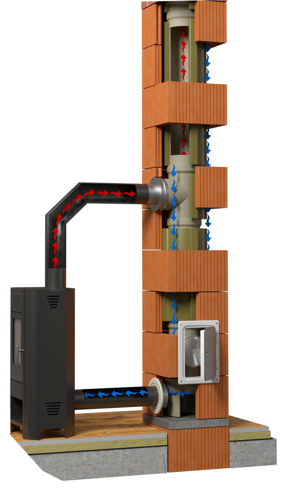 Díky použití kvalitních komínových vložek s nízkou nasákavostí není potřeba instalovat větrací mřížku, která je nežádoucí při přívodu vzduchu komínem.