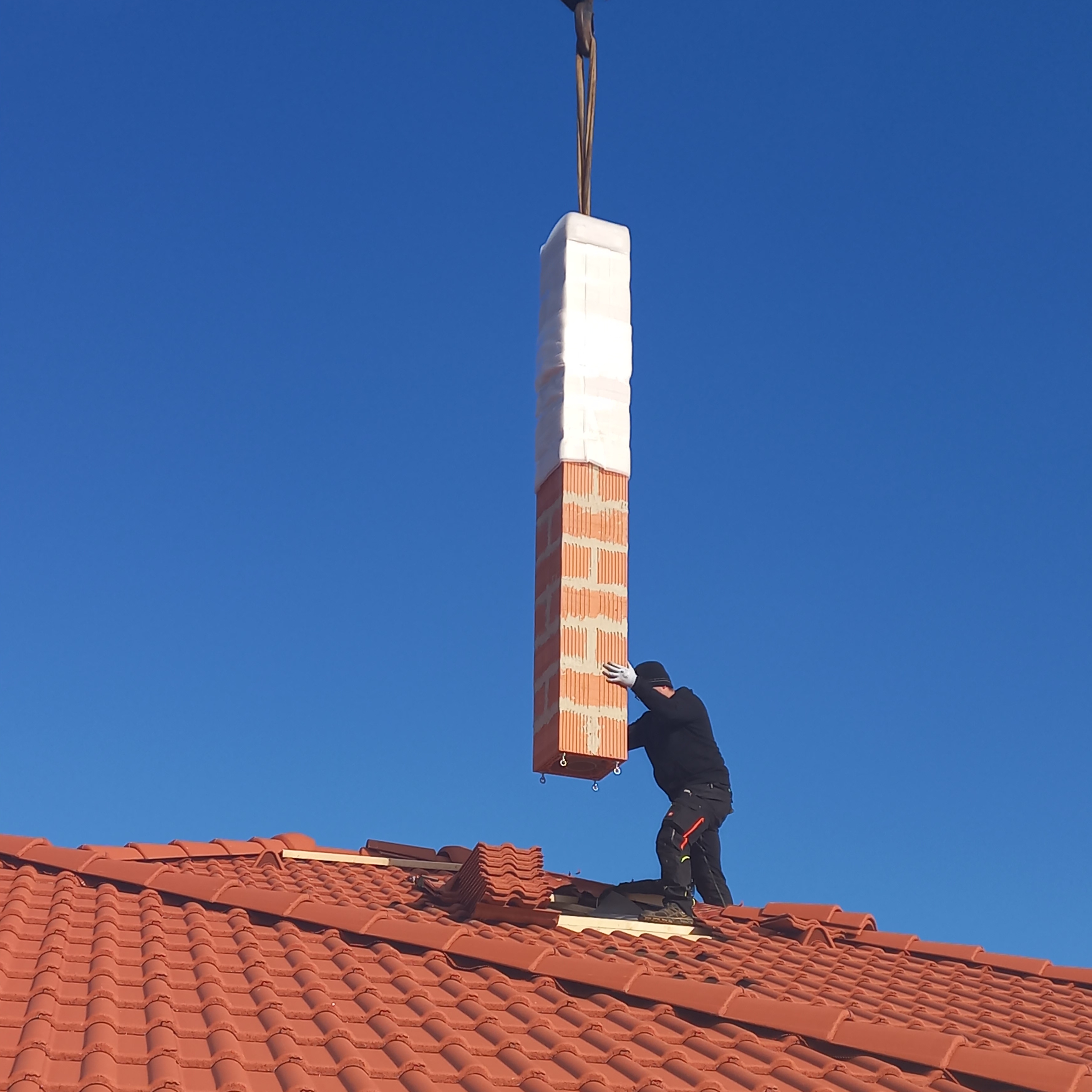 Komín CIKO monoTEC je obvykle sestavený ze dvou částí, montáž probíhá za pomoci jeřábu. Odpadá tedy vyzdívání komínového tělesa. Časově efektivní technologie provádění přitom neznamená žádné kompromisy z pohledu funkčnosti a nabízí všechny důležité parametry moderního komína s izolovanou izostatickou vložkou.