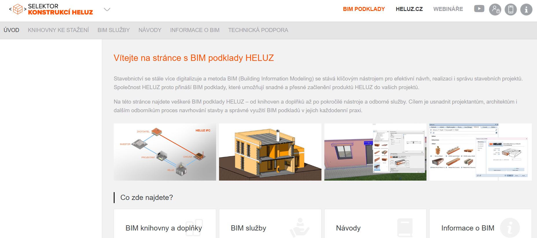 HELUZ disponuje kvalitními podklady pro projektanty a architekty pro software Revit a ArchiCAD, včetně pokročilého nástroje pro vytváření nabídek Cihla 4.0 a softwarovým doplňkem pro automatizovaný návrh překladů a doplňkových cihel kolem stavebních otvorů. Nově HELUZ nabízí projektantům pro podporu užívání svých nástrojů samostatnou stránku BIM poklady. Na ní najdeme BIM podklady ke stažení a kromě toho další důležité informace, jak tyto podklady správně využívat při projektování. Stránku využijí zejména projektanti a architekti, ale rovněž studenti stavebních škol.