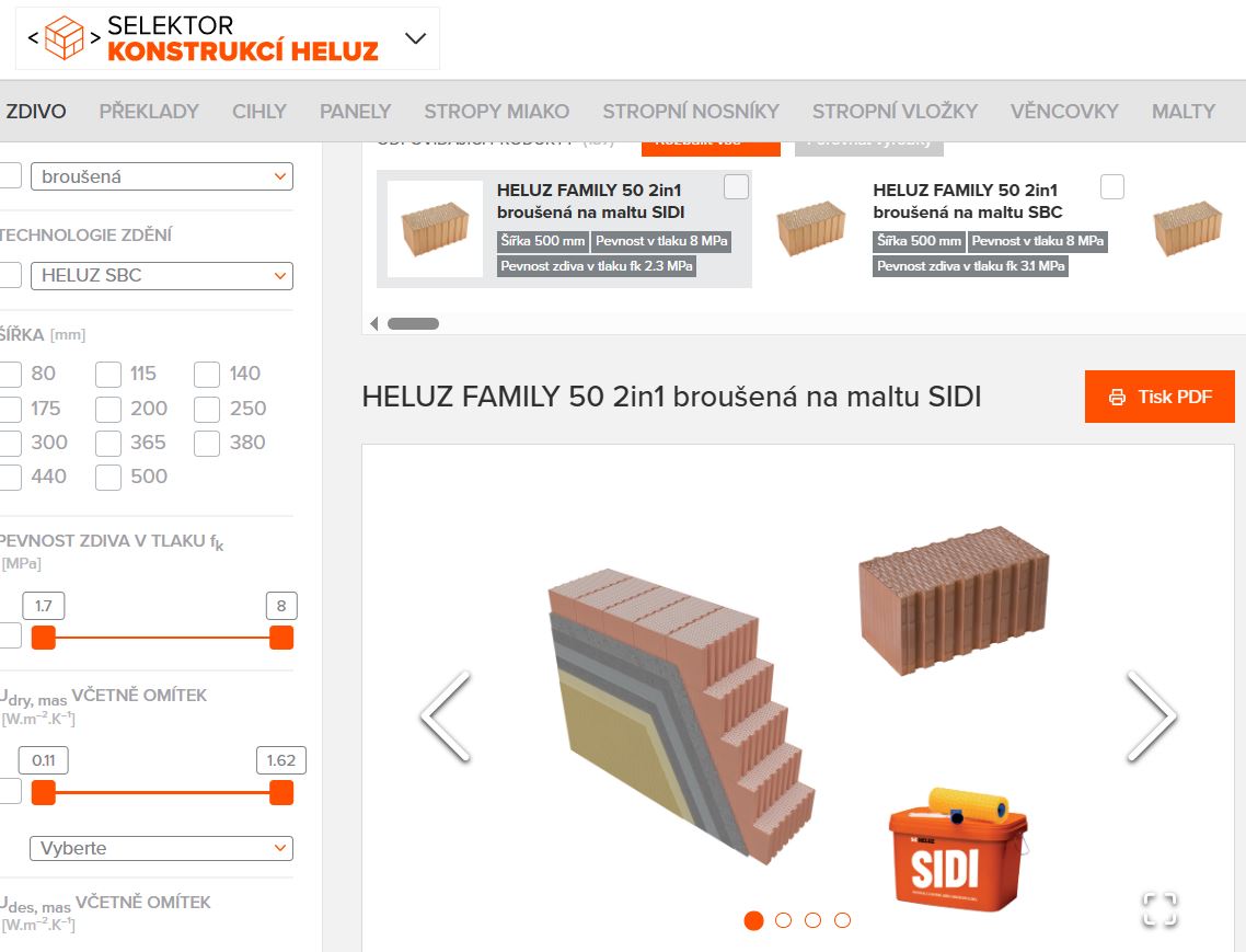 Projektanti ocení především několik vylepšení na stránce selektoru konstrukcí, které by měly vést k dostupnějšímu využívání informací. Nově je možné překliknout jednoduše mezi Selektorem konstrukcí, Galerií CAD detailů a Selektorem skel HELUZ IZOS. U cihel byla navíc přidána galerie obrázků, kde lze vedle náhledového obrázku najít i technický výkres cihly a vazby rohu zdiva a standardního ostění. Ke každému produktu byl přidán popis, došlo k doplnění nadpisů kategorií vlastností pro zpřehlednění soupisu vlastností produktu a byly přidány některé nové vlastnosti, například název veřejné zakázky, montážní uložení (u překladů), údaje o prostupu, šířce izolace a výšce konce konzoli (balkonové panely a panely s prostupy).