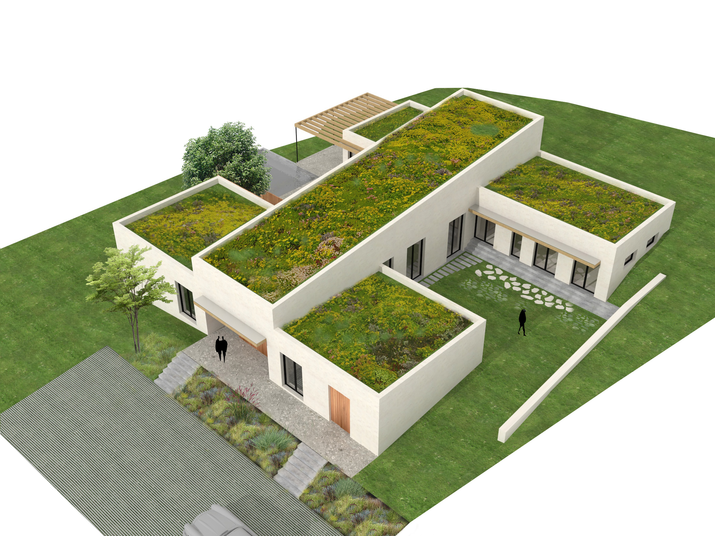 Ano, díky tomu může být poměrně velká plocha domu otevřená do několika míst. Atrium s terasou poskytuje výhled na město, to druhé je řešené jako soukromá klidová zóna. Jsou do něj orientována okna z ložnice a dětských pokojů.