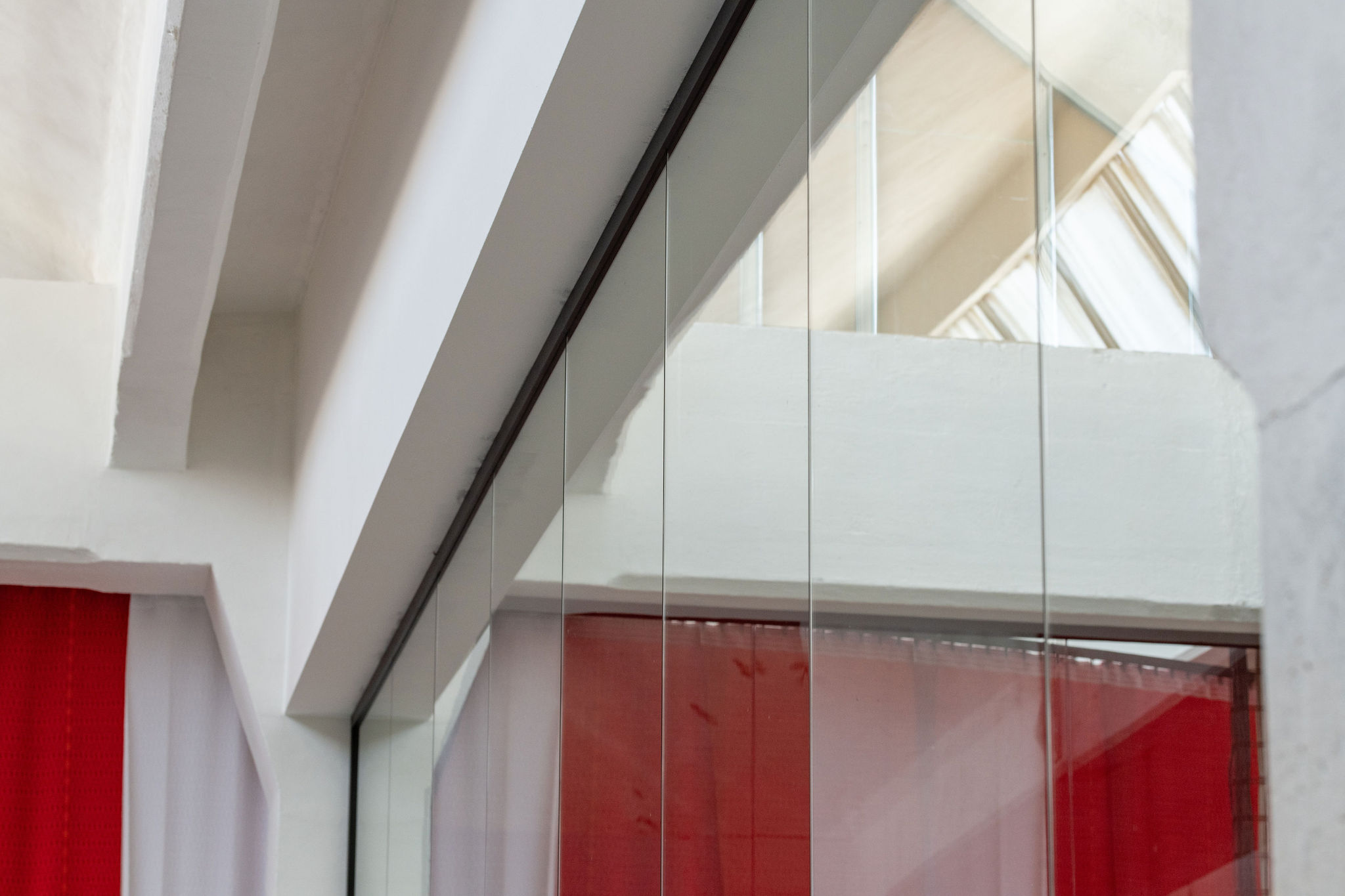 Klíčovou roli v rekonstrukci interiéru sehrála skla od společnosti HELUZ IZOS, která definovala designové pojetí i provozní uspořádání budovy. Skleněné tabule tvoří hranici mezi zrekonstruovanou částí objektu, určenou pro expozice a veřejnost, a tou ponechanou v původním stavu jako autentické svědectví doby.