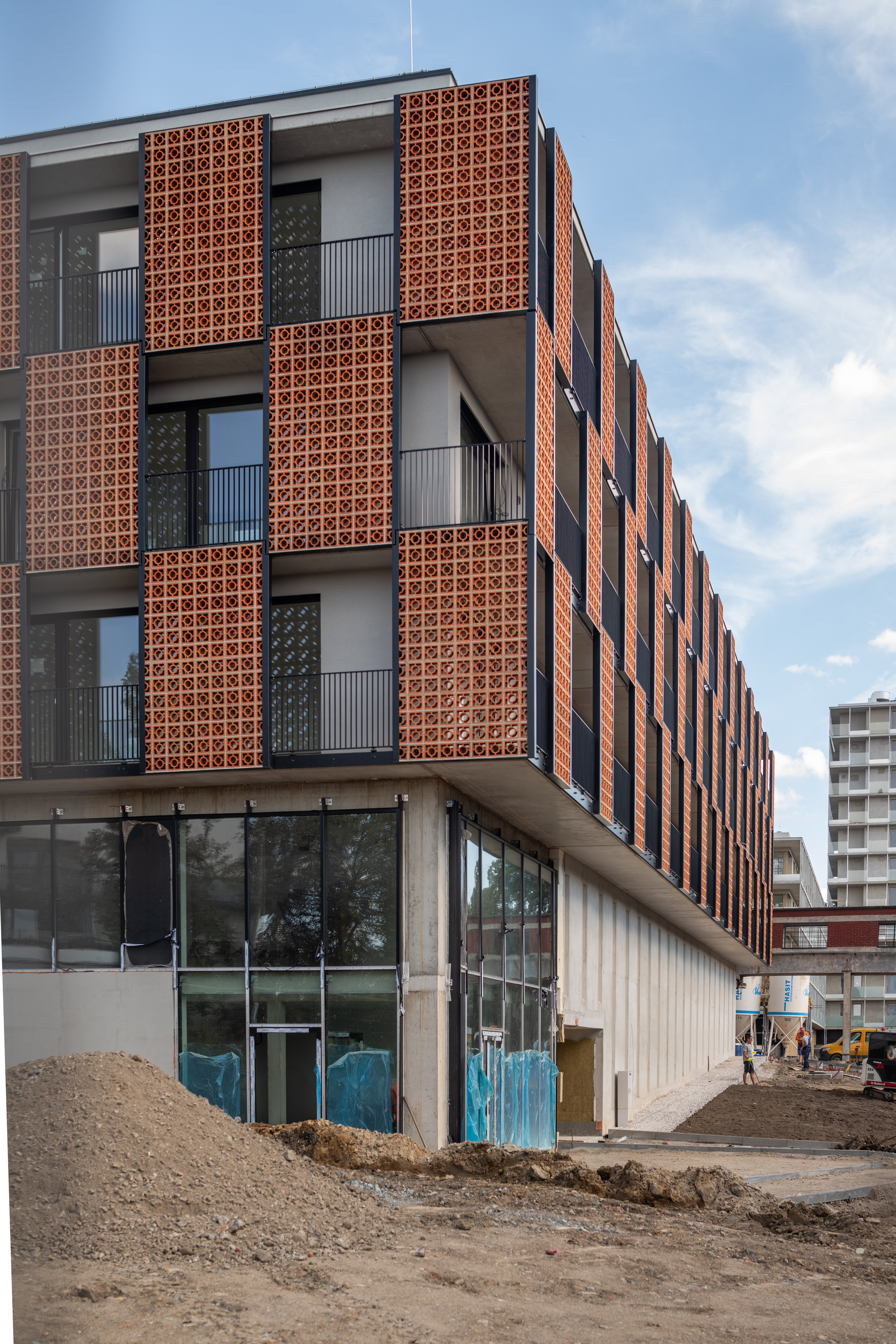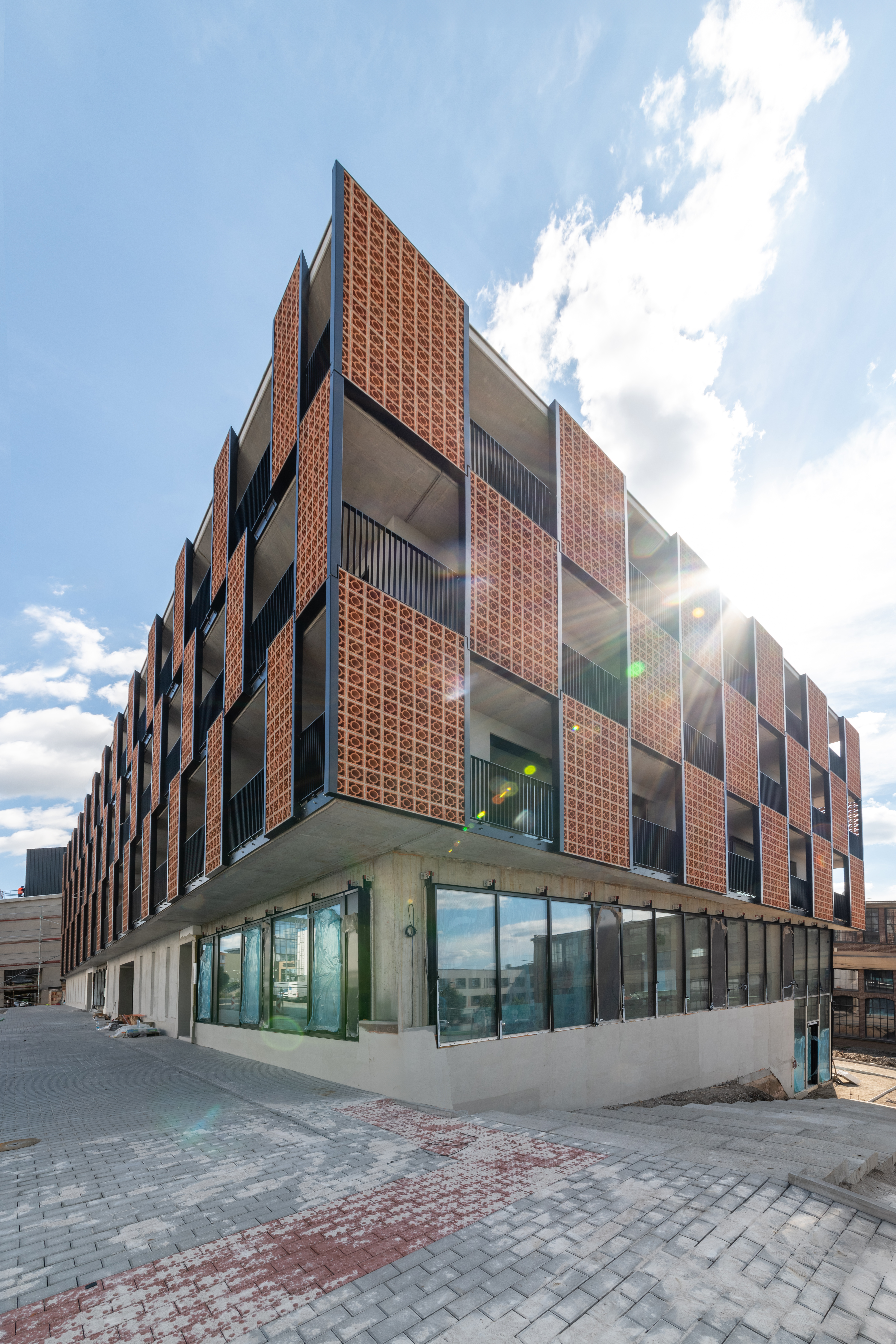 Blok D je navržen jako bytový dům s dominantní vysokopodlažní částí, která vertikálně akcentuje uliční frontu, zatímco jeho horizontála se směrem k ulici otevírá vstřícným parterem. Ten je definován elegantní fasádou s velkoformátovým zasklením ve zlatavých rámech. Naproti tomu blok C, situovaný na nároží u Papírenské lávky, působí expresivněji. Jeho fasáda je tvořena plastickými cihlovými prvky, které vytvářejí silný architektonický výraz a odkazují na industriální dědictví místa. S tímto robustním materiálovým základem příjemně kontrastuje bohatě prosklený parter.