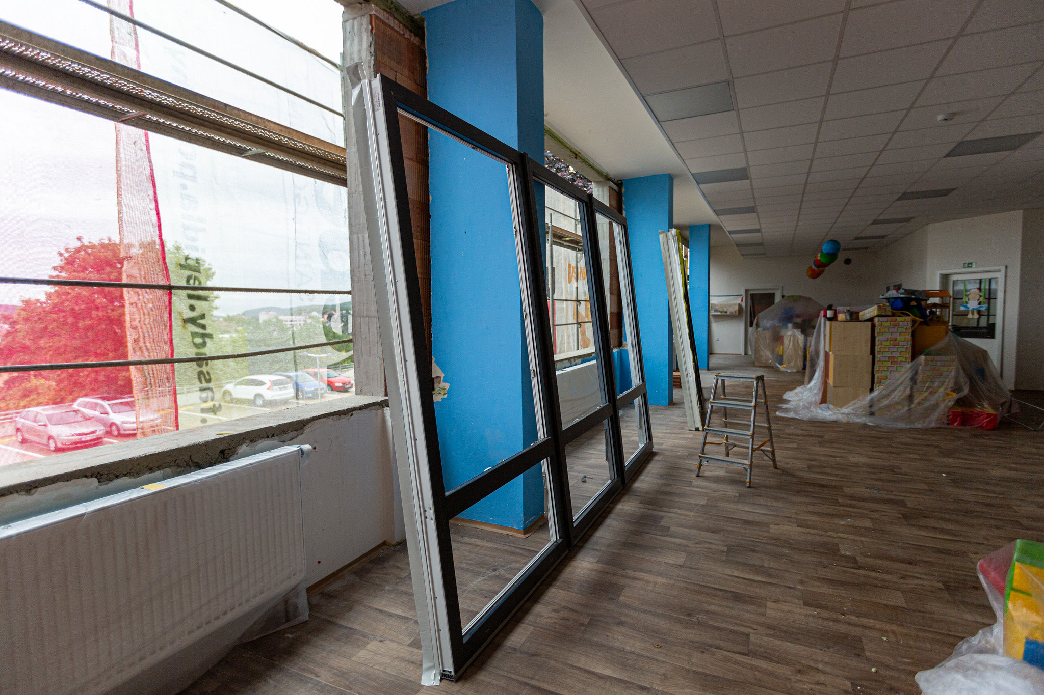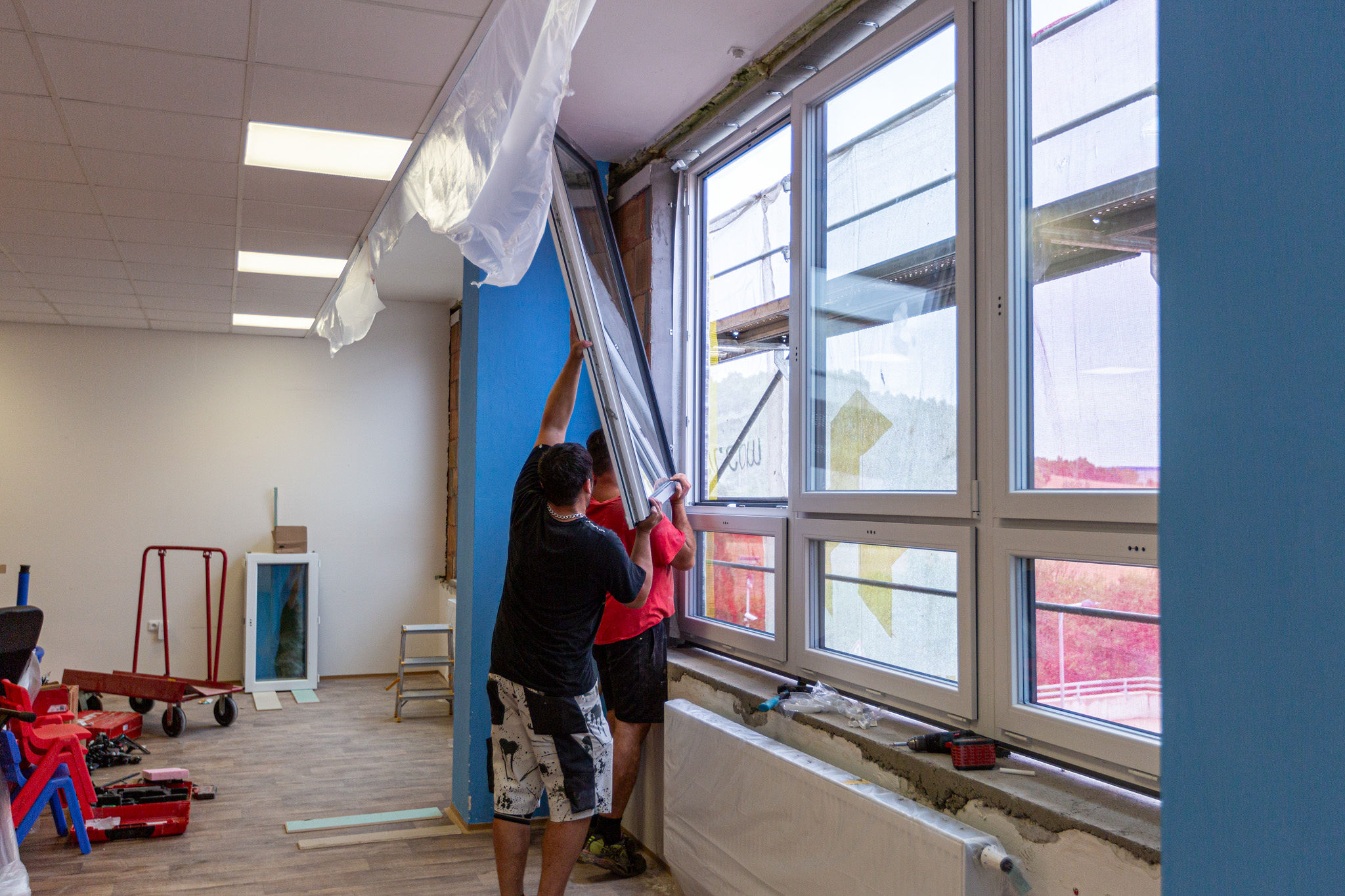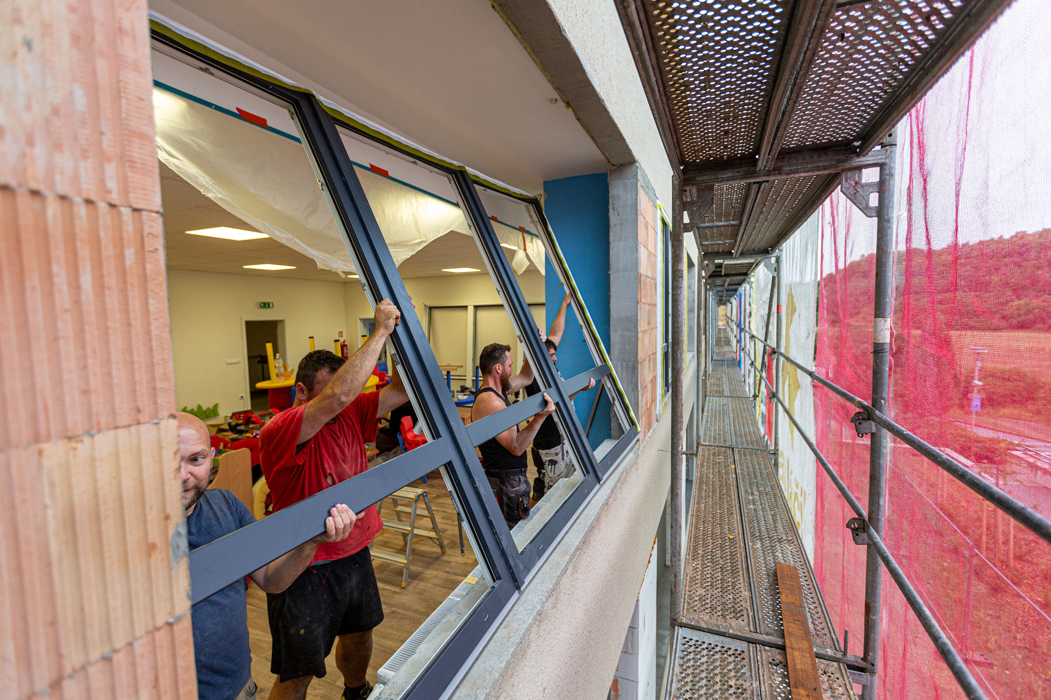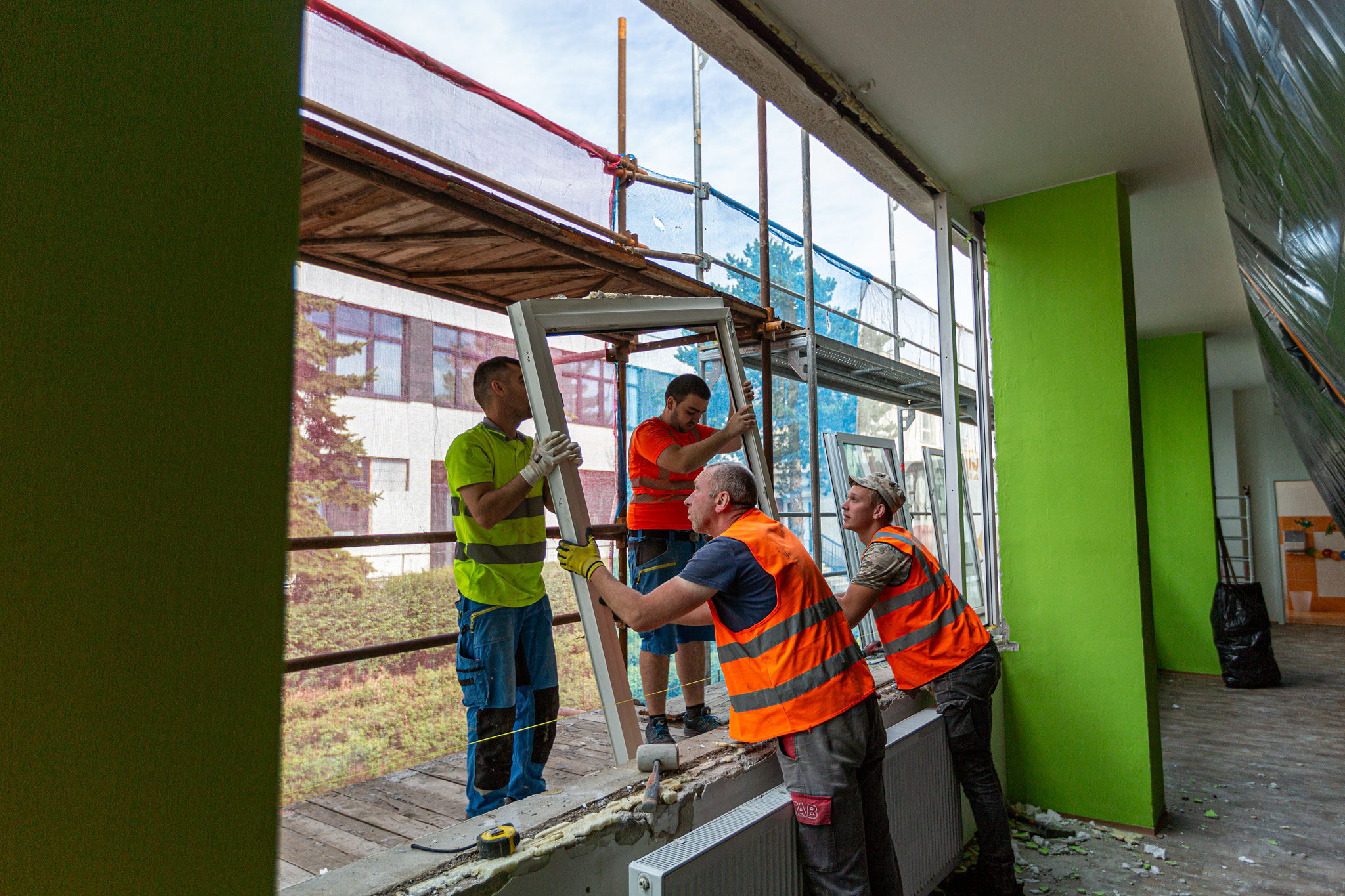 Nejen výrobu oken, ale i jejich montáž, zajistila bzenecká firma Decro. Ta montuje týdně běžně padesát vchodových dveří, a ještě více oken. Zkušenosti s velkým objemem montovaných oken i dveří se projevily v hladkosti a rychlosti celé akce. Výměna oken v celém objektu tak trvala ani ne deset dnů.