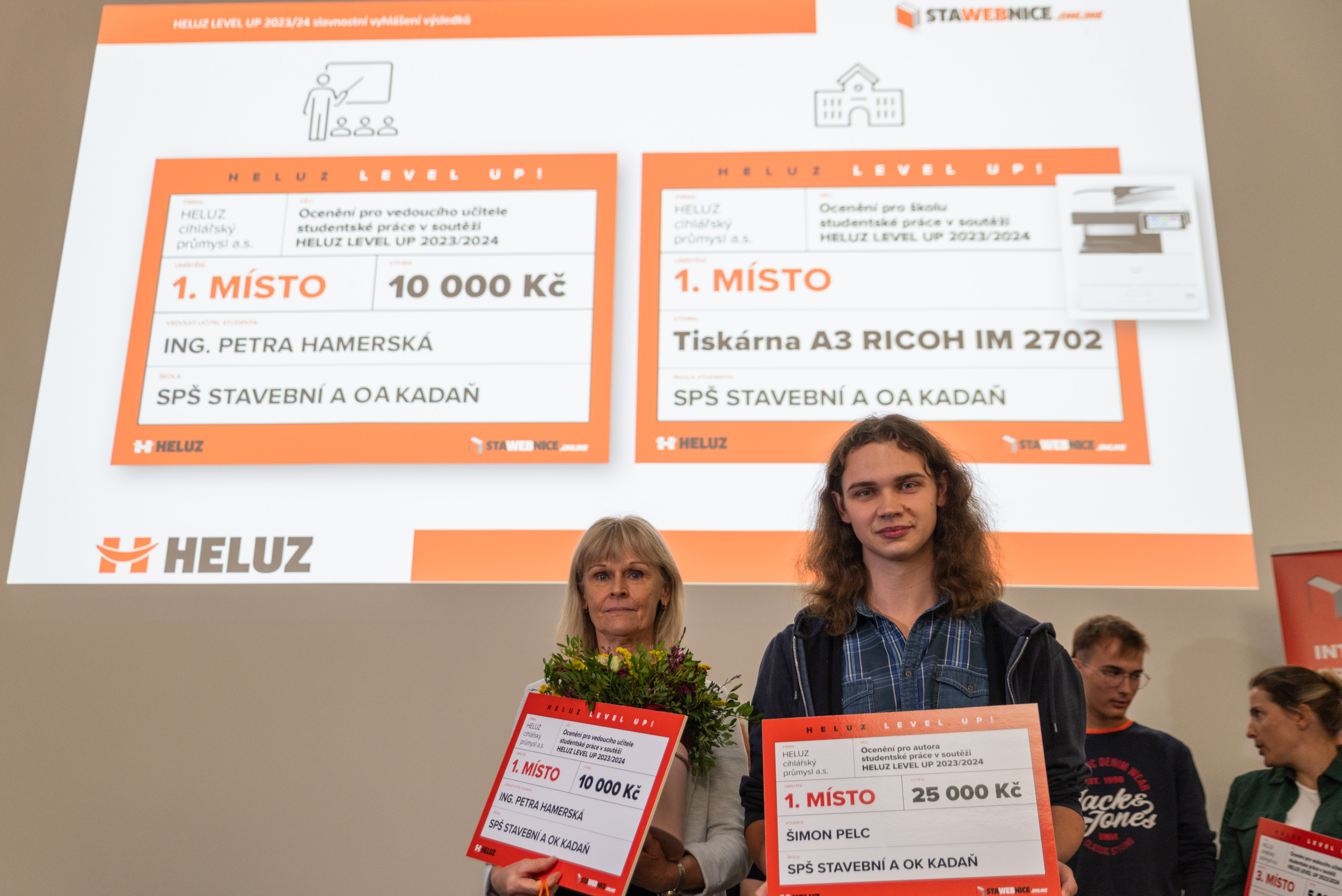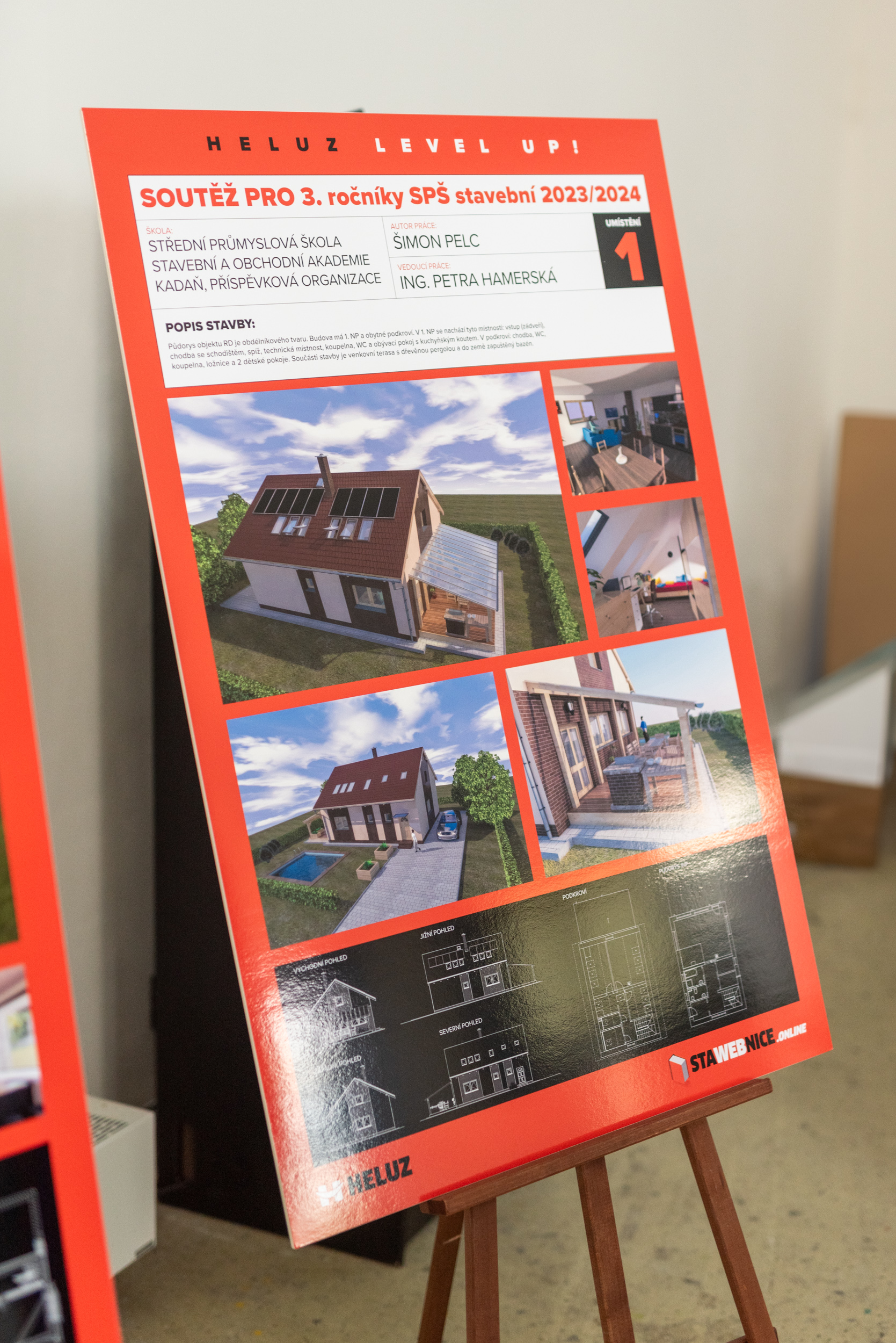 Finanční ocenění získala také vedoucí učitelka vítězného studenta. „Šimon je šikovný, pracovitý, skromný a pokorný. Kdekdo je šikovný, ale chybí pokora a pracovitost. Šimon je výjimka. Reagoval na moje připomínky, okamžitě je zapracovával, ale zároveň uvažoval samostatně,“ zhodnotila pedagožka Petra Hamerská z kadaňské stavební průmyslovky. Vedoucí poroty Ing. Zdeněk Kobza, produktový specialista společnosti HELUZ, ocenil stoupající úroveň studentských prací. „Za ty čtyři roky, co soutěž probíhá, se kvalita prací