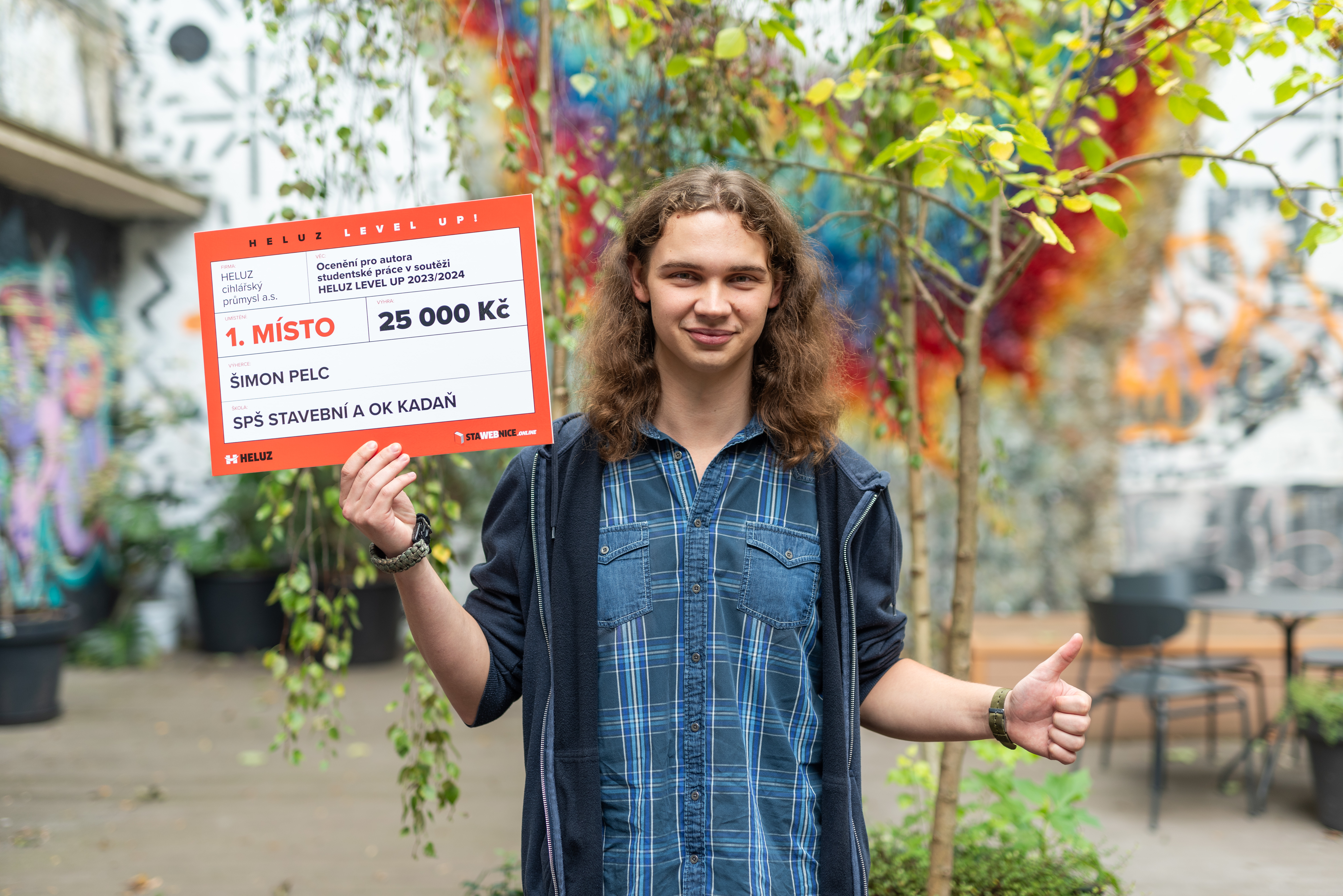 Brno – „Doufal jsem, ale do poslední chvíle jsem tomu nevěřil,“ komentoval svou výhru student Šimon Pelc, který v soutěži HELUZ LEVEL UP 2023/2024 získal první místo. Kromě diplomu si student 3. ročníku SPŠ stavební a OA Kadaň odnesl také hlavní cenu 25 000 korun. Slavnostní vyhlášení soutěže se konalo na konci září v kreativním hubu KUMST v Brně.